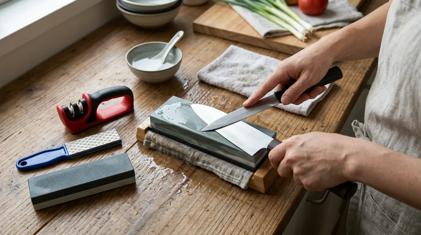 ここまで紹介してきたのは、あくまでダイソーの簡易シャープナーを使った「日々のメンテナンス」や「応急処置」的な研ぎ方です。もし、あなたが料理好きで、「もっと本格的に、カミソリのような切れ味を追求したい!」という領域に足を踏み入れたいなら、砥石(といし)を使った研ぎ方に挑戦するのも素晴らしい趣味になりますよ。